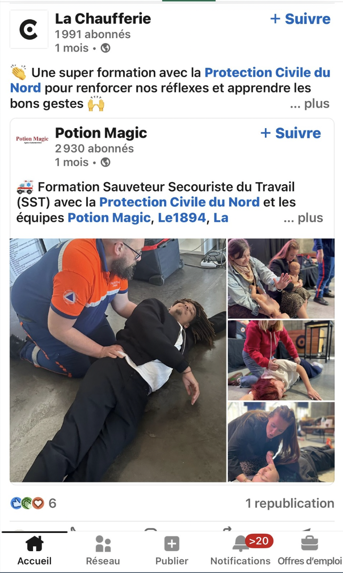 Un post dédié à la formation aux premiers secours suivie par l'équipe, visant à rassurer les clients sur notre professionnalisme et notre capacité à gérer d'éventuels incidents.