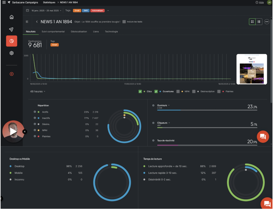 88 % des lecteurs ont lu le mail plus de 10 secondes,